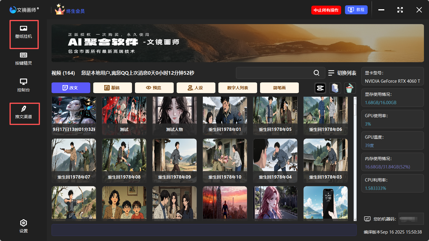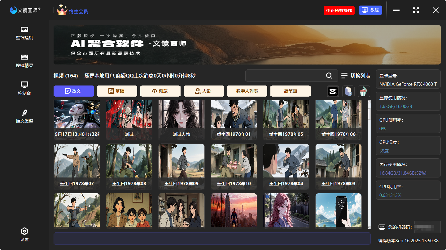 文镜画师是一个强大的AI图片&视频生成工具,包括小说推文视频,描述绘图,AI视频动漫等...